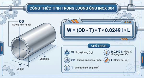 Công thức này cho phép bạn ước tính cách tính ống inox 304 một cách nhanh chóng và chính xác.